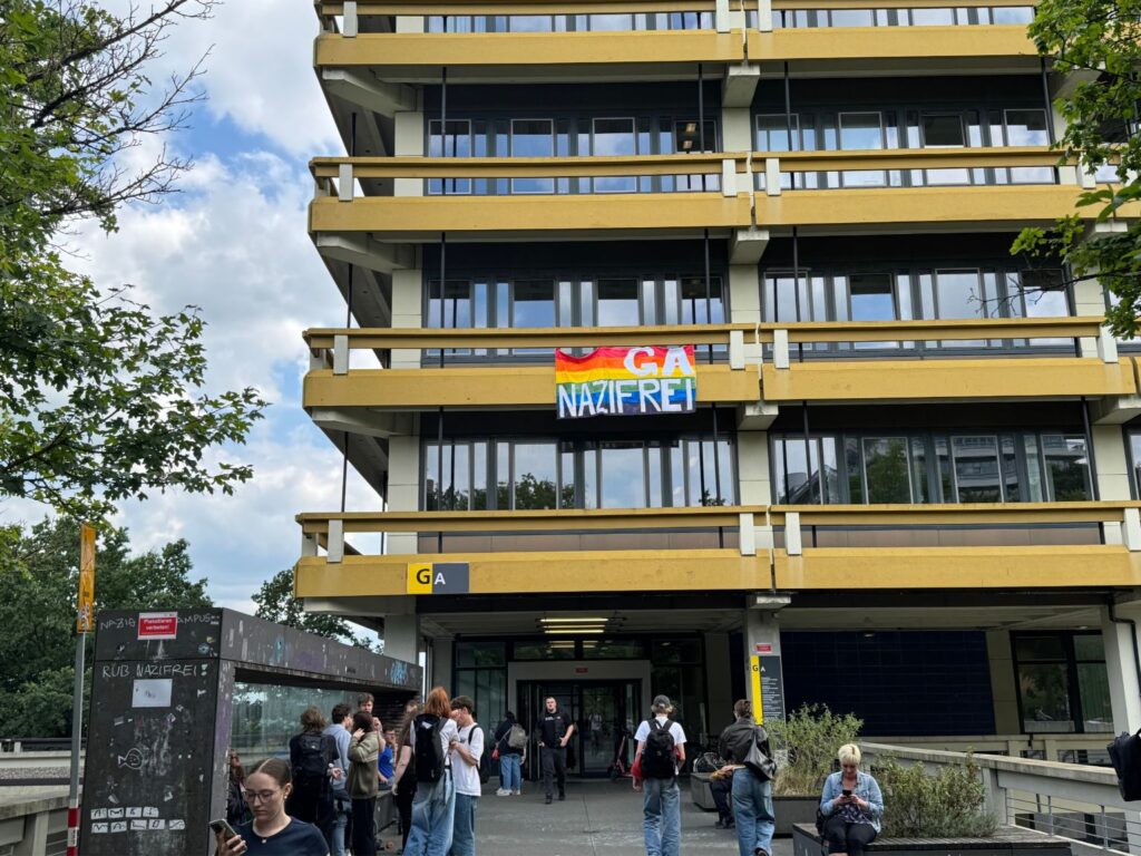 Auch an unserer Partneruniversität, der Ruhr-Universität Bochum (RUB), kam es in letzter Zeit vermehrt zu solchen Vorfällen. Die Pressestelle veröffentlichte zwei gesonderte Statements (23. Juni und 04. Juli) zu den Angriffen. Der AStA-Vorsitzende der RUB, Henry Herrmann, berichtete unserer Redaktion über die Angriffe: „Dabei wurden unter anderem die Türen des autonomen queer-feministischen Referats sowie des queer-feministischen Archivs „Lieselle“ aufgebrochen, Materialien entfernt oder überklebt und Datenträger zerstört. Auch das Gleichstellungsbüro und die Antidiskriminierungsstelle wurden Ziel von Einbrüchen. Pride-Flaggen wurden aus verschlossenen Vitrinen entwendet und vor dem GA-Gebäude verbrannt, begleitet von rechten Schmierereien.” Der dortige AStA und das Rektorat stehen laut Herrmann im stetigen Austausch und reagieren gemeinsam auf die Situation.