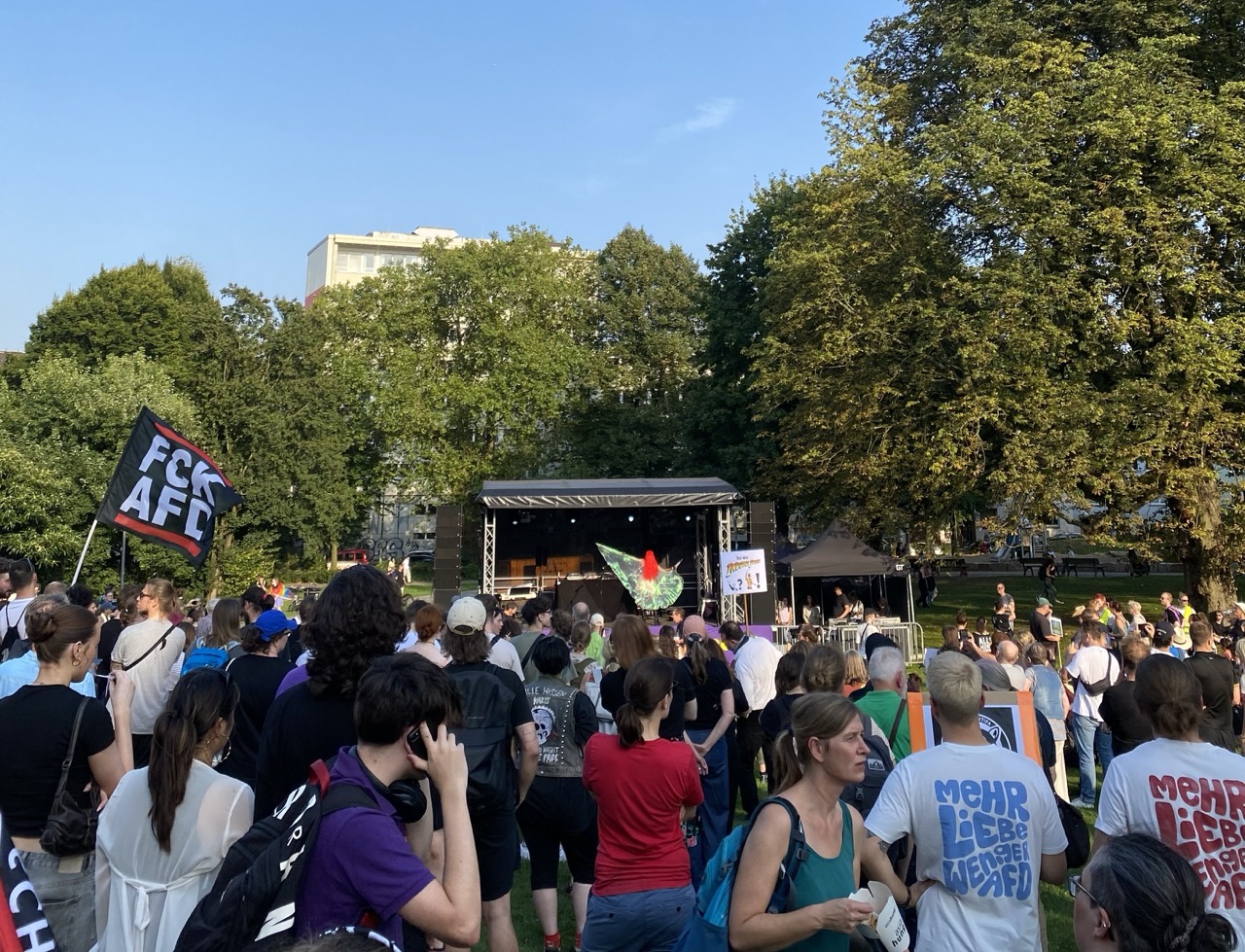 Timo: Ich würde sagen, es ist schon das Kerngeschäft und auch einfach eine sehr gute Möglichkeit, mit demokratischem Willen eine politische Forderung auf die Straße zu bringen und sichtbar zu machen, wie viele Menschen eigentlich Meinungen zu diesem Thema teilen. Es zeigt auch, wie viele Menschen hinter den Aufrufen stehen und dass diese kleine, sehr laute und sehr gewaltorientierte Gruppe am rechten Rand eben nicht die Mehrheit darstellt. Natürlich müssen wir uns auch bewusst sein, dass wir einen Rechtsruck haben, dass viele der Wähler:innen bei der letzten Bundestagswahl rechts beziehungsweise rechtsextrem gewählt haben.